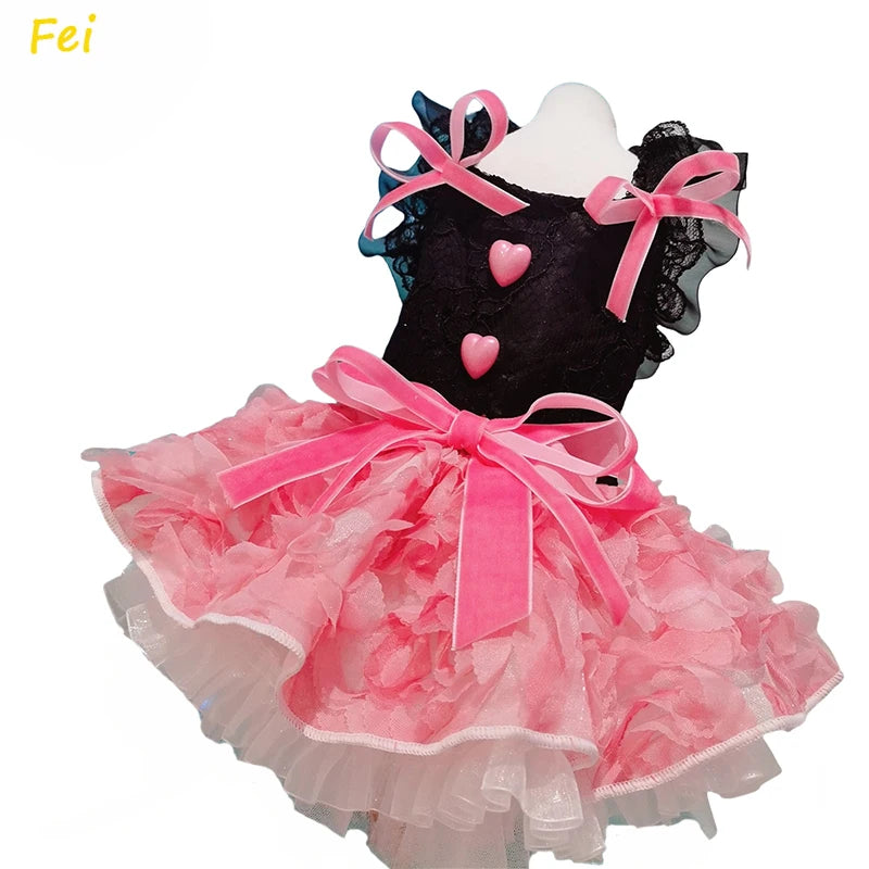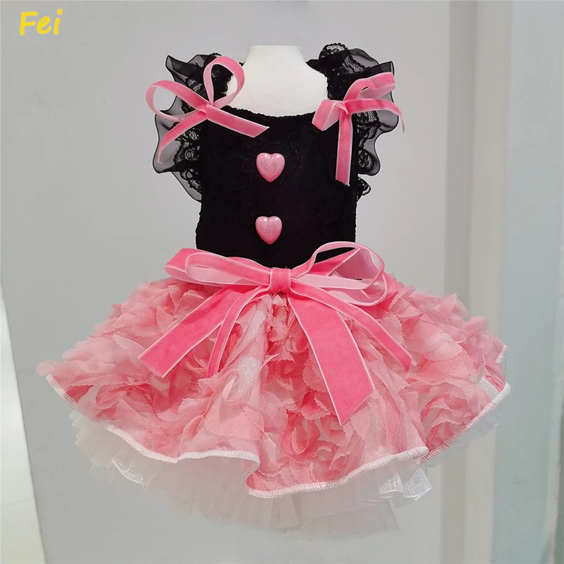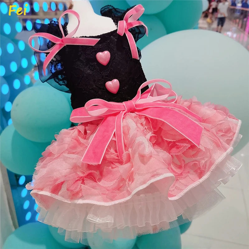 Luxury Satin Dog Wedding Dress with Pearl - Bride Puppy Formal Gown Flower Girl Tutu Skirt + Veil for Small Breed Poodle